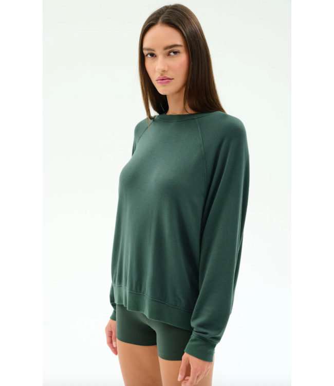 This crewneck pullover is a throw back to the classic college sweatshirt. Indulgent and sporty, with raglan sleeves and ribbed hem and cuffs. The feminine drape stretch modal fabric is soft, versatile and ultra-flattering.