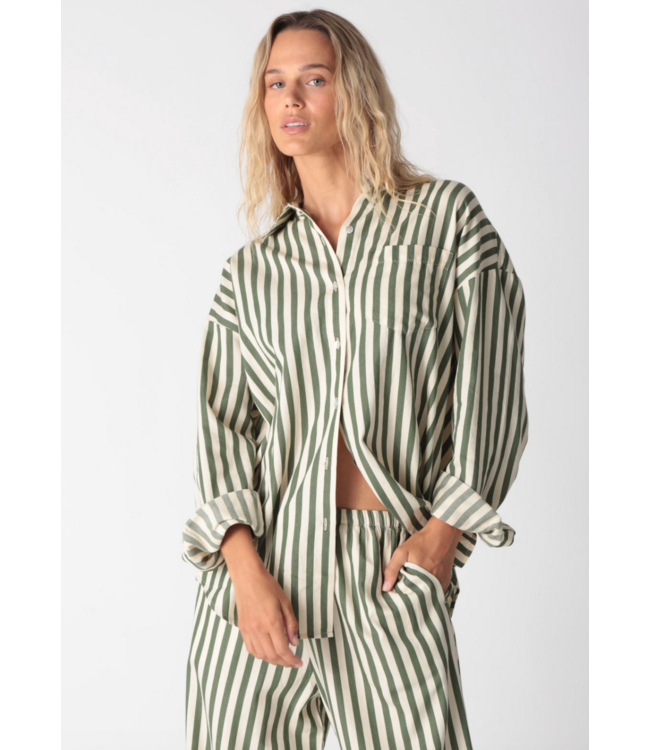Boyfriend Shirt Stripe- Moss/Ivory