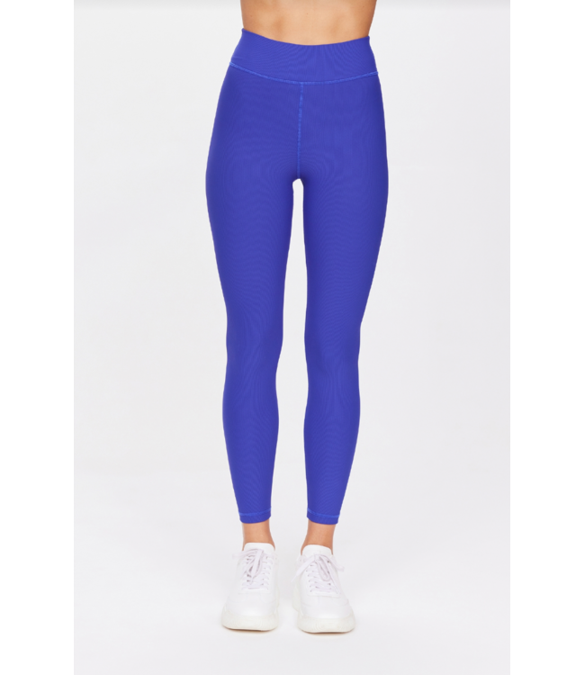 THE UPSIDE women's blue Carnaby 25 inch Midi Pant is made from a soft recycled ribbed fabrication. This mid rise legging features a soft folded waistband.