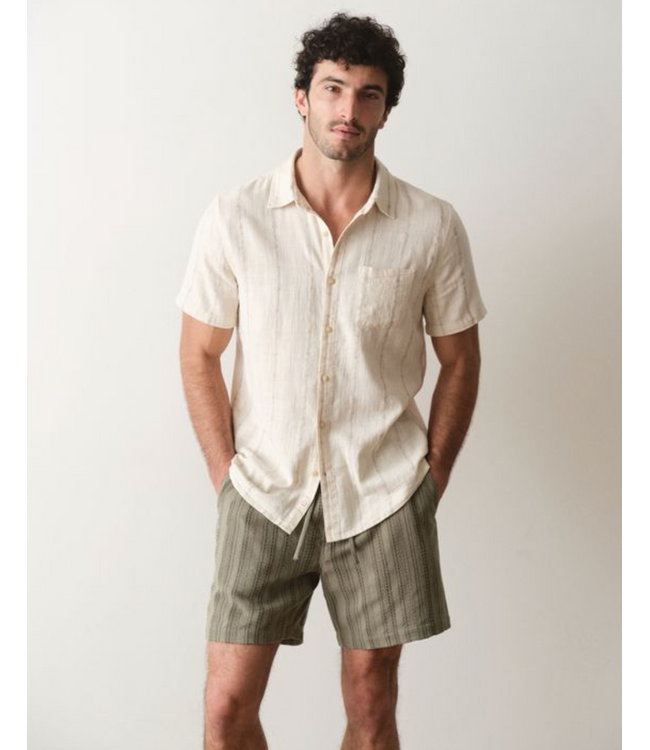 Review Marine Layer Classic Stretch Selvage Shirt- Cream Embroidery