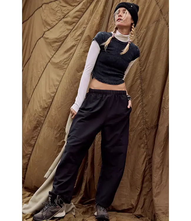 Ready for anything in a relaxed yet sporty silhouette, these effortless pants are featured in a high-rise, tapered style with defined seaming and slightly barreled legs for the coolest shape.