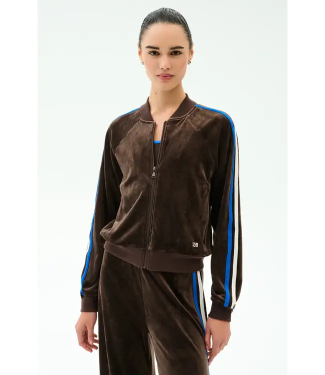 Heritage Velour Bomber- Dark Chocolate/Blue