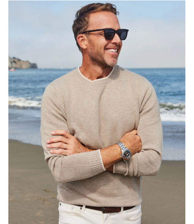 Napoli Crew Neck Wool & Cashmere Sweater- Sand/Ivory Trim