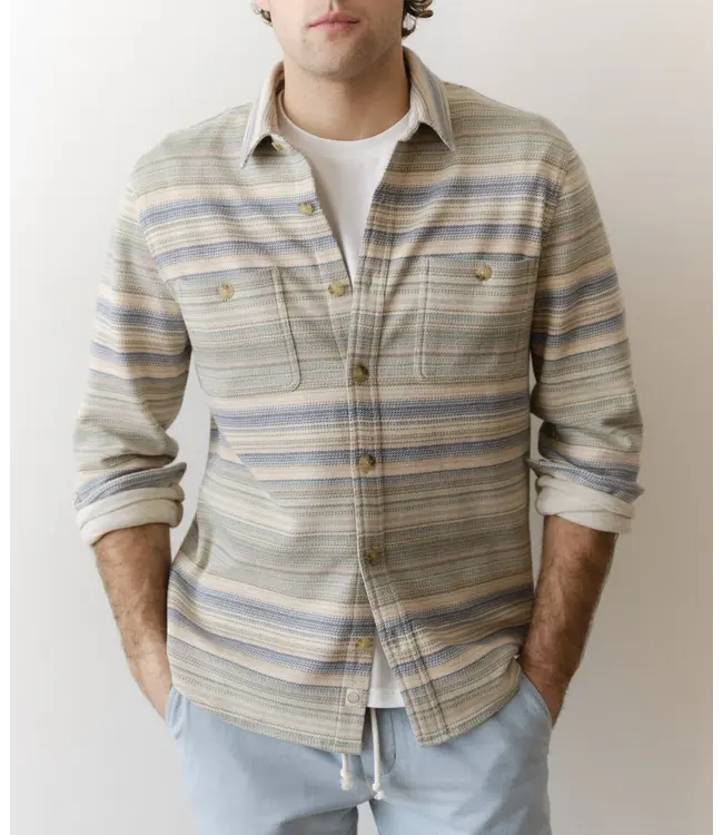 Pacifica Stretch Twill Overshirt- Blue/Green Baja Stripe