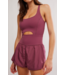 The perfect one-and-done running outfit, this easy romper features a slim-fitting top with a cooling cutout at the center paired with airy retro-style shorts.