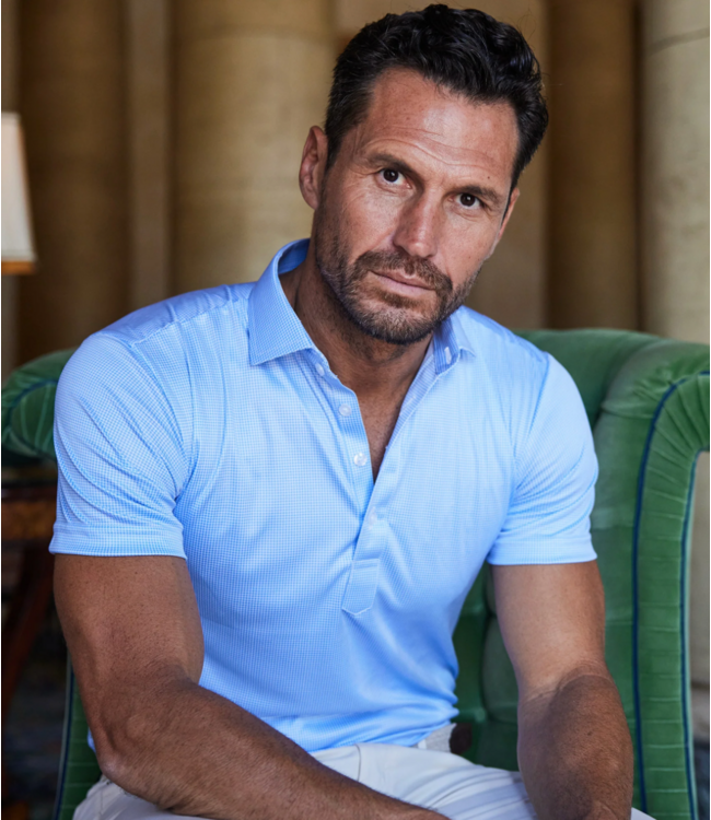 Semi Spread Collar Polo- Blue Houndstooth