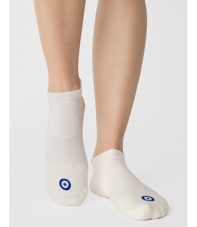 Womens Evil Eye Grip Sock- White